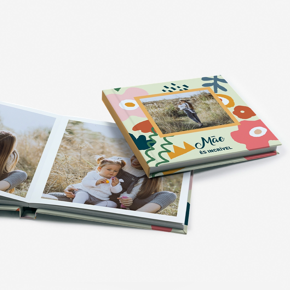A capa rígida em cartão duro oferece proteção adicional e um acabamento elegante ao teu álbum.