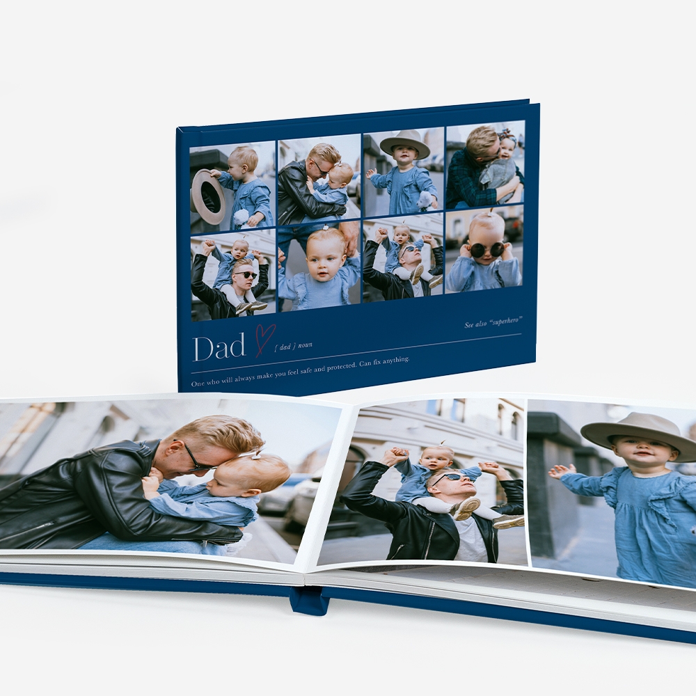 A capa rígida em cartão duro oferece proteção adicional e um acabamento elegante ao teu álbum.