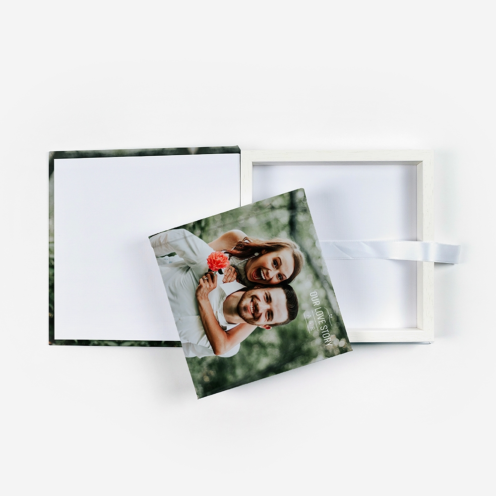Personaliza a tua Box Square como se de um Álbum se tratasse. Através da sua capa fotográfica, poderás importar fotografias, textos ou cliparts. Se quiseres, poderás ainda replicar a capa do Álbum na Box, criando assim um par perfeito.