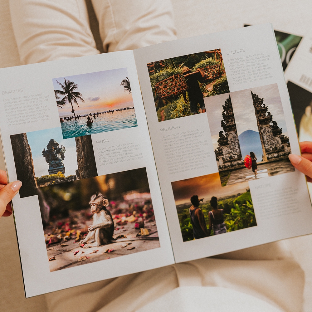 Cada foto revista é impressa em papel couché 135 g. de alta qualidade, com acabamento em matte, garantindo cores vibrantes, excelente definição de imagem e um toque profissional em todas as páginas.