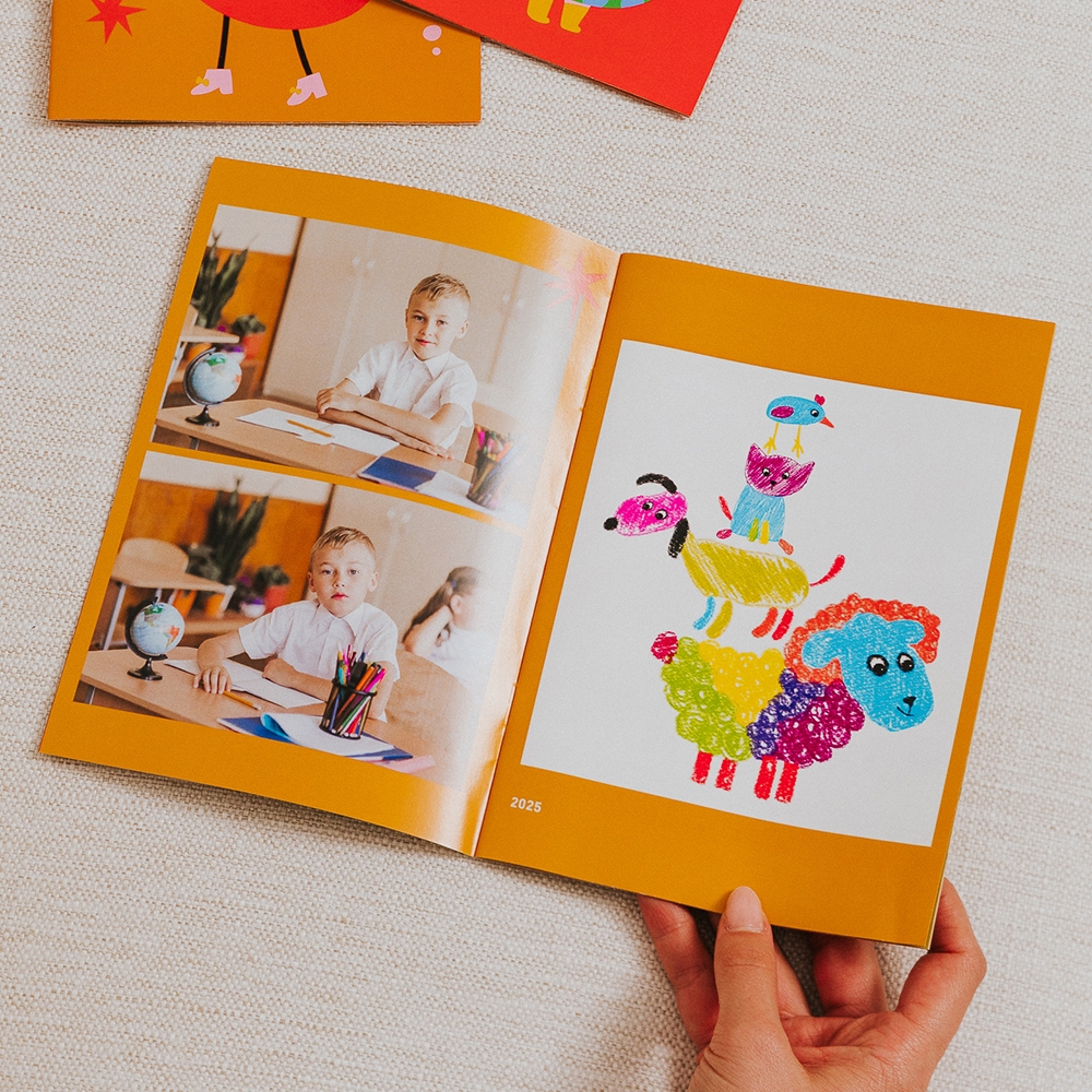 Con encuadernación flexible y apertura tipo revista, este producto ofrece una lectura fluida y cómoda, perfecta para hojear recuerdos de forma ligera y desenfadada.