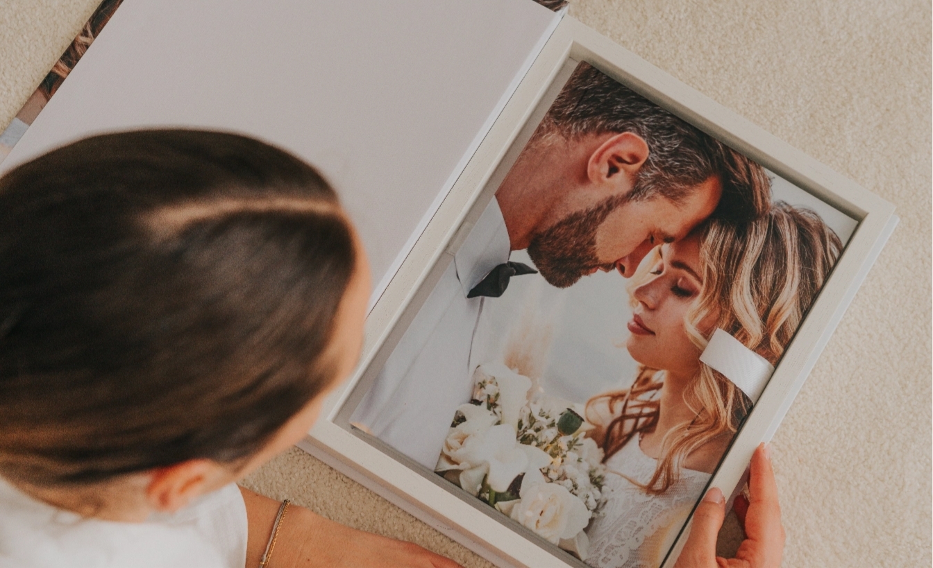 Na nossa loja online encontras álbuns de fotos para casamento com acabamento profissional e possibilidade de personalização total. Podes escolher o tipo de capa, papel, tamanho e número de páginas. Seleciona um formato maior para o casal e aproveita tamanhos inferiores para oferecer de lembrança, por exemplo aos padrinhos do casamento.