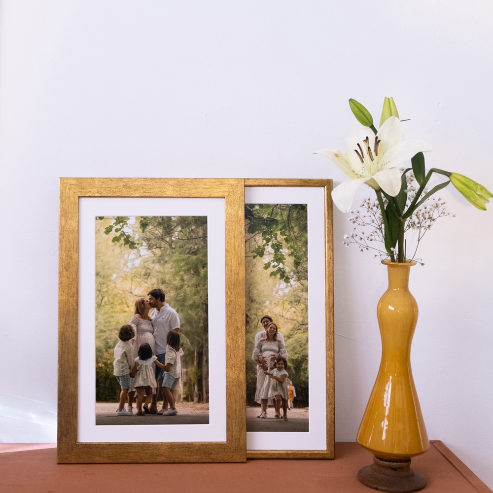 Moldura de alta qualidade, fabricada em madeira, garantindo durabilidade e um acabamento perfeito para destacar as tuas fotos.