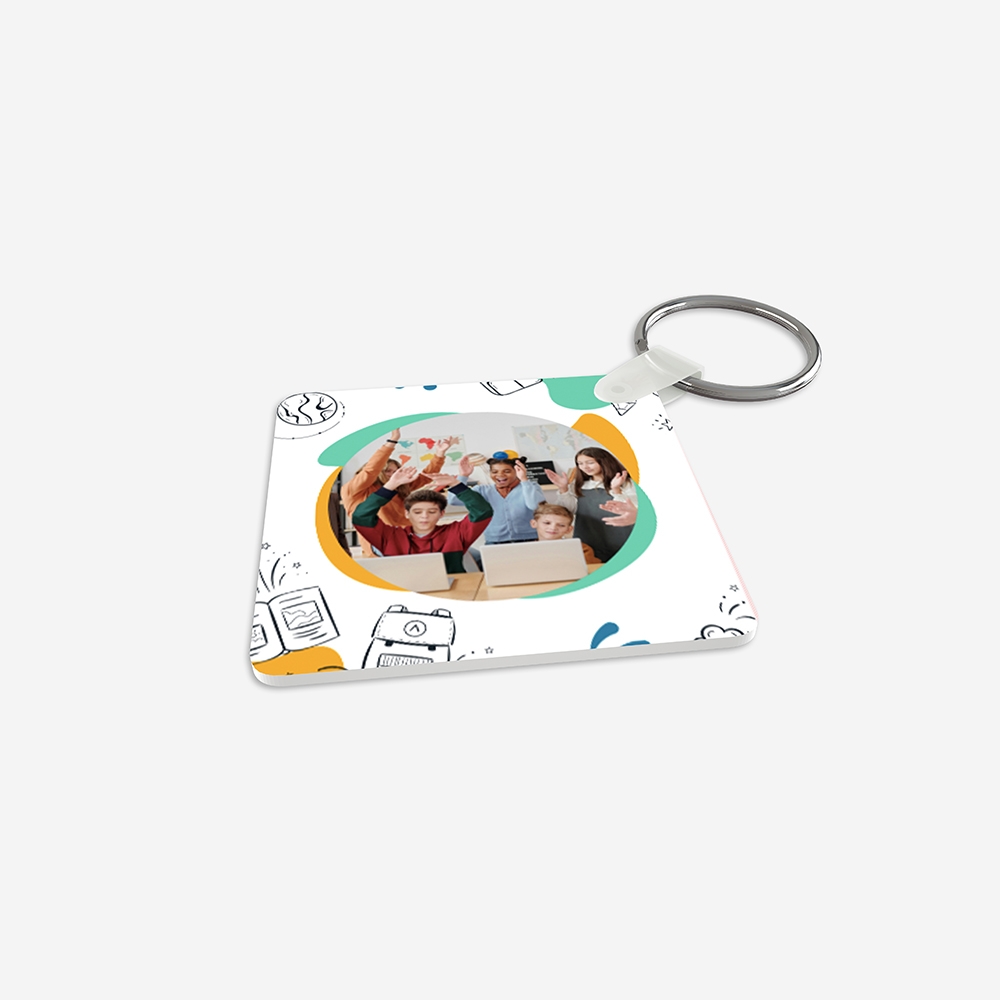 Produzido em acrílico resistente, este porta-chaves combina leveza e durabilidade. A personalização é feita por sublimação térmica nos dois lados, garantindo cores vivas e detalhes nítidos.